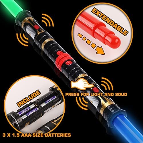Realistic Details: Bright glowing blades with realistic and authentic FX sound effects. Kids and adults alike will enjoy the dramatic sword clashing sound effects, Makes the game more realistic.