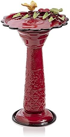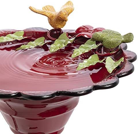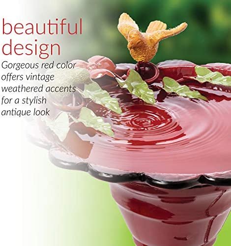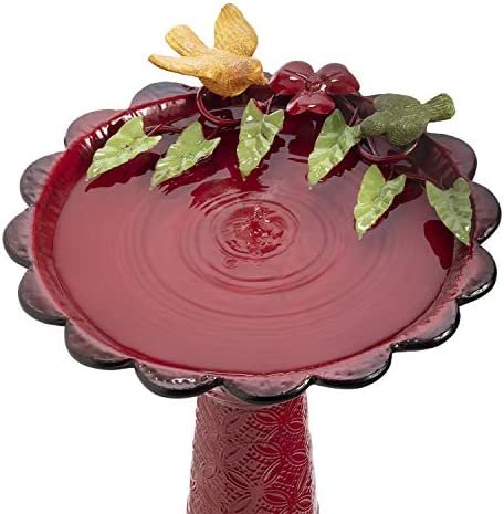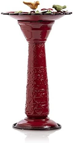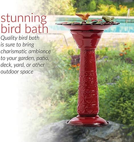 Beckon feathered friends to your yard with the Alpine Corporation Red Glossy Metal Birdbath. Fill the bath with fresh water and enjoy watching all the birds congregate near your patio, garden, deck, yard, or pool! This birdbath features a flower-like basin with accent birds and leaves on the top edges and textured patterns on the neck below the birdbath. Covered in a gorgeous red glaze, the glossy, vibrant look is great for adding a pop of color to your outdoor decor. It is perfect for pairing with a bird feeder to coax a variety of birds outside your window during any season. The sturdy pedestal keeps the birdbath from tipping over while the metal construction withstands weather changes. Your yard will be the delight of humans and winged creatures alike! With a 1-year , you can be confident in the quality of your purchase. Bird bath measures 17″L x 17″W x 28″H for use in yards of any size. Alpine Corporation is one of America’s leading designers, importers, and distributors of superior quality home and garden decor products. Alpine’s award winning in-house design team continuously develops new and innovative “statements pieces” for your home and garden. Your outdoor living spaces will be the envy of the neighborhood with our wide assortment of fresh, fashionable and contemporary products, from beautifully crafted solar garden stakes featuring patented motion and fiber optic lighting technology to gorgeous glass and glow-in-the-dark bird baths and feeders.