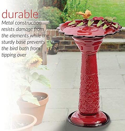 DURABLE CONSTRUCTION: Metal construction resists damage from the elements while the sturdy base prevents the bird bath from tipping over