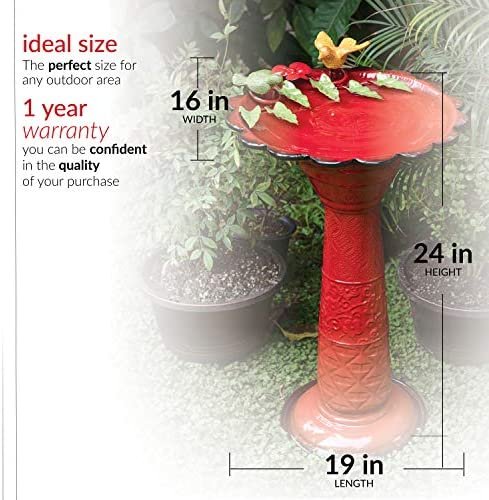 IDEAL SIZE: Bird bath measures 17″L x 17″W x 28″H, the perfect size for your yard, and includes a one year manufacturer’s warranty from date of purchase