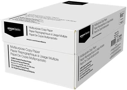 Amazon Basics Multipurpose Copy Printer Paper, 8.5 x 11 Inch 20Lb Paper – 8 Ream Case (4,000 Sheets), 92 GE Bright White