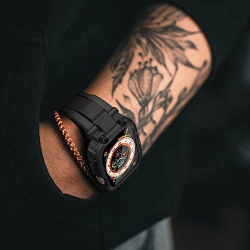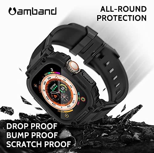 amBand Bands Case Screen Protector Compatible with Apple Watch Ultra 49mm, M1 Sport Series Rugged Cover Strap and 2 Pack Tempered Glass Film, Military Protective Bumper for iWatch 49 mm Men Black