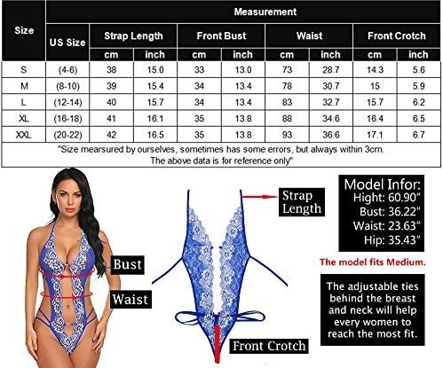 FEATURES:Women Lace Teddy Lingerie features a deep v-neck,adjustable halter neck straps and an additional back-up white lace trim to accentuate your female curves and accentuate your unique sexy and charming.