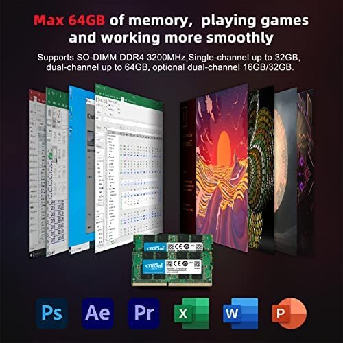 【16G RAM+500G SSD】 Mini Pc is equipped with 16G DDR4 RAM (2x8G, Operating speed up to 3200MHz), multitasking switching without lag. Built-in 500GB M.2 NVMe SSD (Reading&Writing speed up to 2350&2000Mb/s), high speed and stability. You can also expand storage with ① M.2 NVMe interface or ② 2.5-inch SSD/HDD up to 2T.