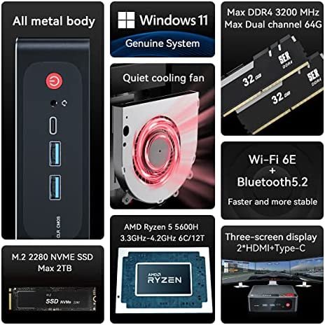 【4K@60Hz+Triple Dripleisplay】Mini computer Integrated Radeon Graphics(7-Graphics Core, Frequency up to 1800 MHz), 4K UHD resolution making it an ideal home theater&Gaming PC. Dual HDMI +T YPE-C interface design, more in line with your work needs. Compact size and VESA bracket can mount on the wall or monitor, saving space.