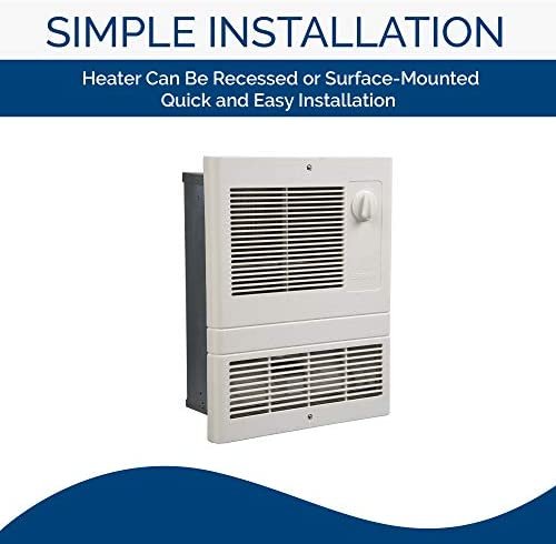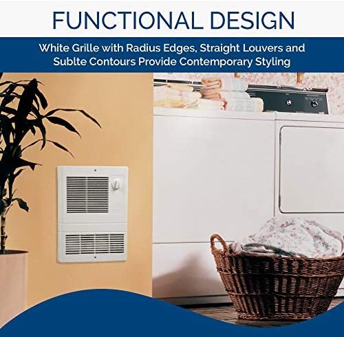 Upgrade your home with Broan-NuTone’s 10.5″ x 12.5″ 1500-Watt High Capacity Fan-Forced Wall Heater! This wall heater is a large capacity unit perfect for areas prone to high heat loss such as lobbies, entrance ways, or vestibules. It is designed with a white grille that has contemporary styling with radius edges, straight louvers, and subtle contours for a clean, attractive appearance. It includes an adjustable, front-mounted thermostat to offer a simple and easy way to control the level of heat. This heater has a rapid warm up time due to an efficient Alloy heating element that provides comforting heat in seconds. The quiet, thermally protected motor shuts off in the event of overheating and the transverse blower circulates heated air downward for optimal room warming. This unit is UL listed to ensure safety. It’s factory wired for 1500W at 120V AC and easily converts to 1500W at 240V AC. This heater is meant to serve as a heat supplement and not serve as your central heat source. Cozy up in your home with Broan-NuTone’s Wall Heater, grille measuring 14. 75″ x 11. 6″.