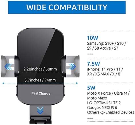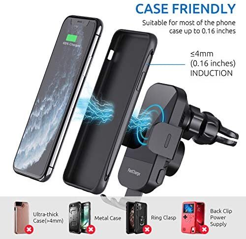 【2-IN-1 Design】 Combines the Wireless Charger and a car cell phone holder, allows for a secure hands-free experience. Keep you away from the tangled locating cords or cables. Cell phone holder is suitable for car Windshield Dashboard Air Vent installation, and makes GPS and phone call more convenient