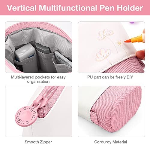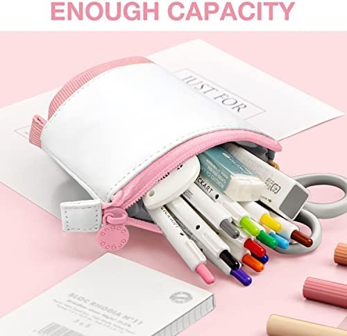 Multiple Use: The cute pencil case is easy to use, you can use it as cosmetic bag, makeup cup, make up brushes holder, office use etc. Cute pencil pouch Ideal for all your stationary such as pens, pencils, scissors, calculator and more