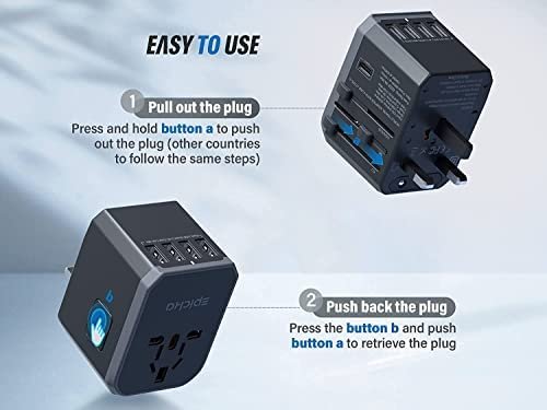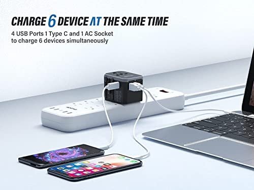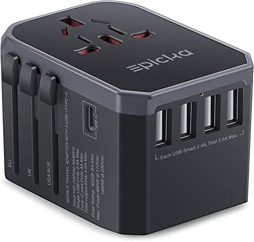 EPICKA Travel Adapter is used for 4 USB and Type-C at same time. It is the safest way to plug in your portable, non-grounded devices around the world.