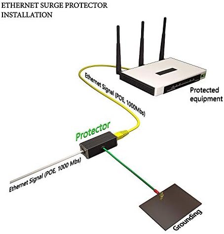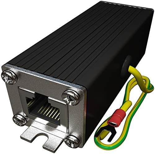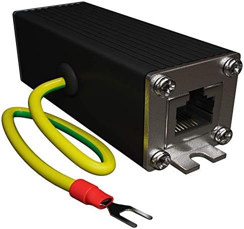 The Ethernet lightning arrestor must be properly grounded to work. The ethernet ground wire (12 Inch – 16 AWG) on the surge protector needs to be connected to ground through the shortest path. Excess electricity will follow the path of least resistance. In most cases, a ground busbar on an electrical panel or network rack cabinet is already grounded and is typically the easiest way to ground the wire. Other options to ground RJ45 surge protector are grounding block on the breaker panel, grounding rod or terminal of the closest outlet by connecting the ground wire to circular grounding hole on the grounded outlet center screw.