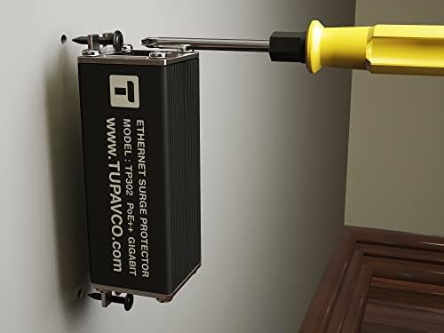 The gigabit surge protector data rate of Gigabit 10/100/1000 (GbE) transfer supports an ultra-fast maximum data rate of 1 Gigabit per second (Gbps – 1000 Mbps) and does not affect the speed performance in the local area network. POE Surge Protector allows a single RJ-45 cable to provide both data connection and electric power to device such as wireless access point, IP and security camera, VoIP phone, computer and others. Surge Arrestor TP302 is designed to protect PSE (power-supply equipment) connected to a network from transient overvoltages. The lightning protector PoE supports both Mode A (Pins 1,2+ 3,6-) and B (7,8+ 4,5-) of the 802.3af standard. 802.3af (PoE) can deliver up to 15.4 watts per port with 12.95W at the powered device, while 802.3at (PoE+) can deliver up to 30 watts with 25.5 watts available to devices. TP302 supports PoE++, also known as High Poe (IEEE 802.3bt standard), and allows a maximum PoE current of 154W/48V when used on all 4 pairs.