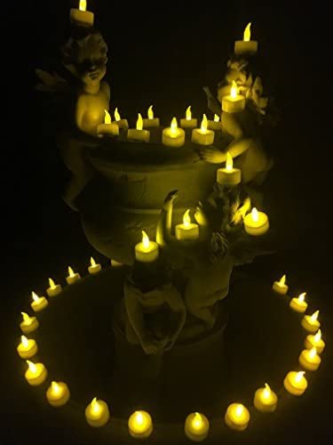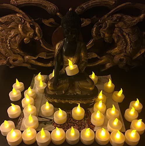 Battery-powered (battery included & installed) amber color LED tea light candles provide realistic flickering effect, ideal for accent decorations for holiday celebrations, wedding ceremonies, special occasions such as birthdays and anniversaries, memorial services, church gatherings, DIY projects and etc. Wind-proof for both indoors and outdoors use, at homes, restaurants, churches, schools, backyards, sports venues and etc.