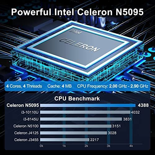 Powerful Intel Celeron N5095 processor – the GEEKOM MiniAir 11 desktop PC is the 11th generation (4 cores, 4 threads, 4 MB cache, up to 2.90 GHz) and provides reliable performance for everyday use. So you can do everything from browsing the web to editing spreadsheets to light games.