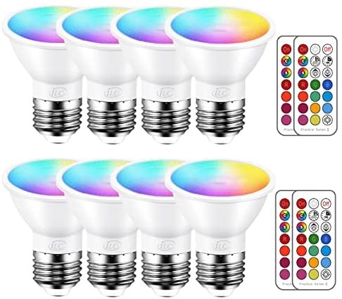ILC Par16 LED Light Bulbs 40 Watt Equivalent Color Changing E26 Screw Beam Angel 45°, 12 Colors Dimmable Warm White 2700K RGB LED Spot Light Bulb with 5W Remote Control,(Pack of 8)