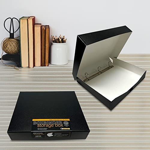 Lineco LIN-733-BB3D Archival Oversized 3-Ring Album Box with Clamshell Style Lid, 13″ x 11-7/16″ x 2-3/8″, Black