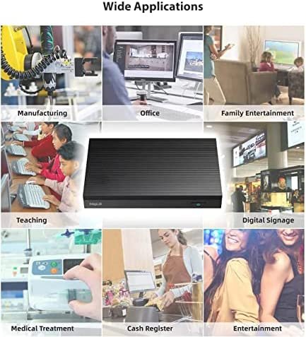 Innovative Fanless Design–this mini pc creatively adopts no fan design,featured no noise and no dust,its frame adopts gird wave design,effectively enlarges the heat dissipation surface.Meanwhile,it is constructed by low heating material with air extracted out.The over-heating control makes sure the cpu run smoothly even suffering long-time working.
