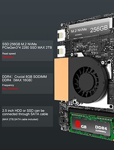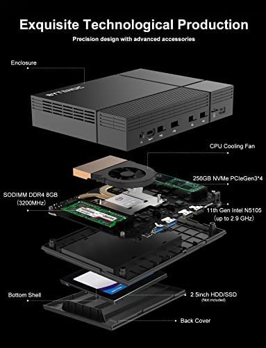 Mini PC, Intel Celeron N5105 8GB DDR4, 256GB M.2 NVME SSD, Mini Desktop Computer, Micro PC, Windows 11 Pro, 4K UHD, HDMI 2.0, 2.4G/5G Dual WiFi, Gigabit Ethernet, 6X USB, BT 5.0