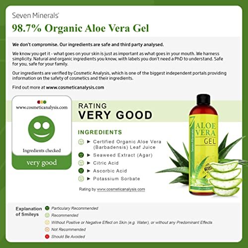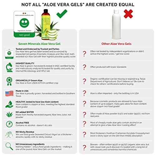 The Difference in Skin Treated with Seven Minerals Aloe Gel is Striking. Thanks to 100% natural thickener Seaweed Extract (instead of Xanthan or Carbomer), it absorbs rapidly with no sticky residue – leaving your skin smooth and silky