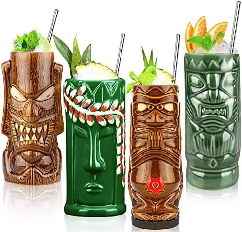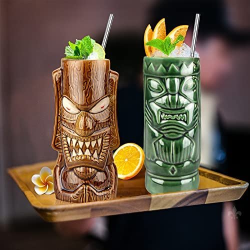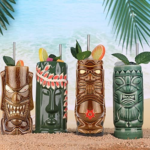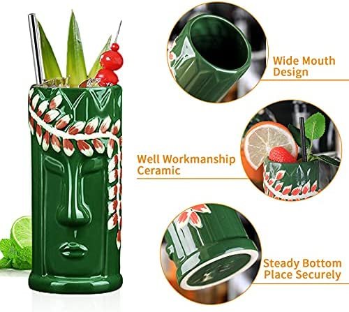 FUNNY and WHIMSICAL DESIGN: these hand painted and fired large ceramic Tiki tumblers will add a touch of fun and elegance to your barware collection or party.