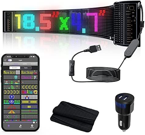 【Intelligent App Control】 By connecting the flexible screen to the app, you can design text, patterns and animations according to your needs and scenes and adjust the brightness and speed to suit your needs. Customise your text and save it in the app. With Bluetooth, you can switch text messages from front seat in seconds. Or create your own animation. You will play it like a child and have a good time.