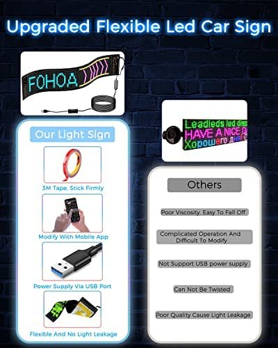 【USB Powered Port and Flexible Circuit Board】The LED display board is lightweight and thin and can be bent and folded as desired. The USB connector design is more portable and has a wider range of applications. 3M adhesive tape that can be attached to the car as desired. Simply stick to the window pane like a sticker and peel off again. The self-adhesive silica gel surface leaves no sticky residue and can be quickly attached without annoying suction cups.